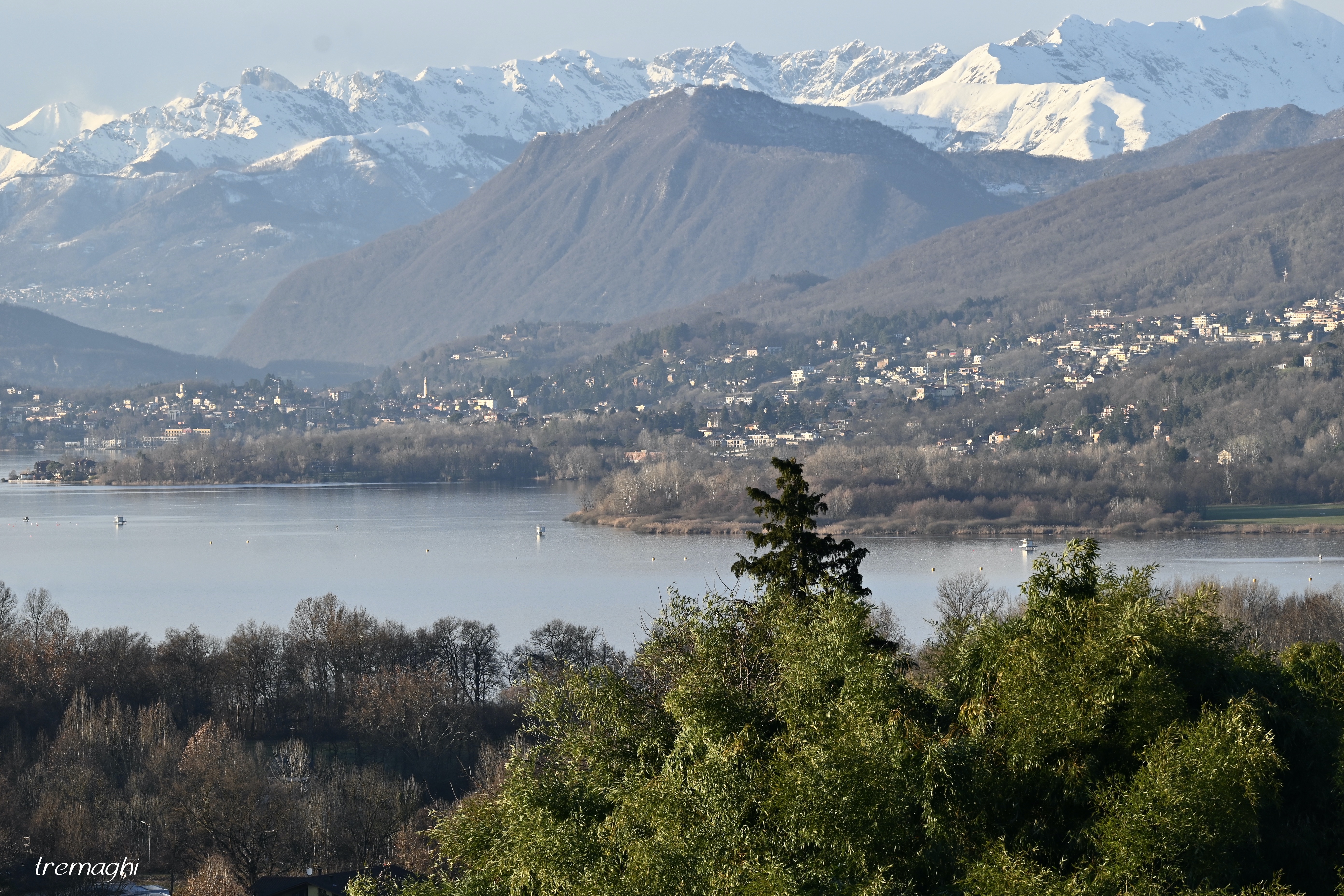 Inizio a scattare qualche qualche foto al nostro piccolo lago circondato dal Campo dei Fiori spolverato di neve, alla catena del Monte Rosa. Non so quanti scatti ho fatto nel tempo dal Belvedere, all’alba, al tramonto, nelle giornate di vento… non è mai lo stesso, ma sempre affascinante.
