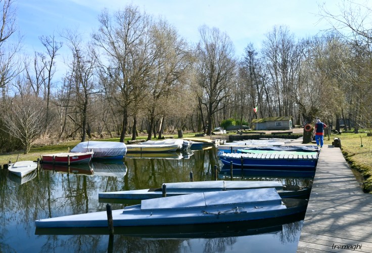 Il porticciolo è uno specchio dove si fondono i colori degli scafi delle piccole barche e le tonalità molto scure degli alberi ancora spogli. Vicino alla riva i pescatori hanno fatto una piccola cappelletta alla Madonna, incorniciata dai tronchi e da due grossi vasi verdi vuoti, nei quali sicuramente presto compariranno delle piantine fiorite.