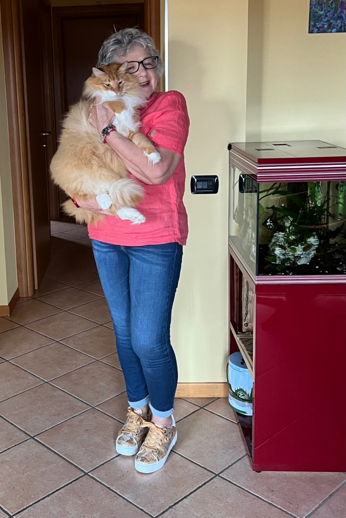 Sono pazza? Forse, ma contenta ed orgogliosa di esserlo. Noi siamo una famiglia, Fulvio ed io, Kimi, Oliver e non da ultimi i nostri pappagallini Agapornis Fischer e i pesciolini che popolano quel meraviglioso ecosistema che prende il nome di acquario. Oggi c’è una piccola festa in casa nostra, Oliver il nostro micio rosso compie sette anni e anche se per lui è un giorno come un altro, noi lo festeggiamo con tanto di torta e la tavola apparecchiata come per le grandi occasioni. Quello che ci donano ogni giorno Kimi e Oliver è un affetto e un amore incommensurabile, anche se i gatti non lo dimostrano palesemente quanto i cani. Spesso li chiamo “le nostre badanti” perché il loro sesto senso li guida ad avere un atteggiamento particolare nei nostri confronti in situazioni particolari, quasi volessero proteggerci e farci percepire la loro vicinanza. Chi afferma che un gatto è un animale egoista, non ha mai condiviso la propria vita con loro. Certo è uno spirito libero, non scodinzola per un biscotto, ma il suo attaccamento e amore non è sicuramente inferiore a quello di un cane, oltre ad essere i nostri piccoli monaci Zen pelosi, che con il loro stile di vita calmo e consapevole, ci insegnano a godere di ogni momento della giornata. Da quando sono in pensione per me il calendario è diventato un optional, non c’è differenza per ogni giorno della settimana e, a meno che non ci siano appuntamenti particolari, uno è uguale un’altro. Solo ieri sera ho realizzato che oggi è il 29 di maggio, compleanno di Oliver, quindi ho mandato subito un messaggio a Silvio della pasticceria Marcolli di Azzate per ordinare una piccola torta meringata per festeggiare il nostro folletto dal musino di eterno cucciolo e che non sa miagolare. A lui oggi abbiamo riservato una extra dose di coccole, comunque riservate anche a Kimi per non farlo ingelosire… in fondo sono come due bambini!