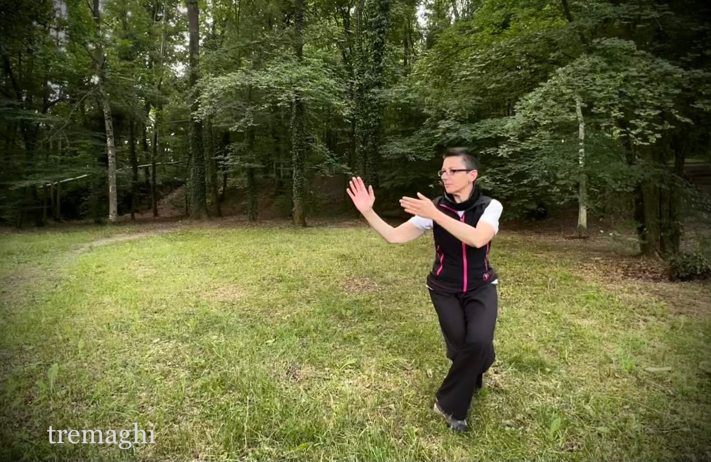 É la seconda volta che mi approccio al Qi Gong, quindi non ne conosco i vari esercizi e osservo attentamente Roberta, imitando le sue dolci movenze, cercando di sincronizzare i movimenti lenti con il respiro. I primi esercizi sono di riscaldamento, percepisco lo sciogliersi ogni piccola tensione e muovendomi ho l’impressione di danzare seguendo la melodia dei dolci suoni della natura. Allungo la colonna vertebrale, alzando la testa e le braccia verso quel lembo di cielo che fa capolino tra le verdi foglie di quercia e mi sembra di giocare a toccare le nuvole che transitano in quell’istante. Non provo alcuna fatica, tutto’altro, sento aumentare lo stato di benessere fisico ed ho quasi la sensazione di prendere coscienza del mio corpo per la prima volta. Cerco di essere più sciolta nei movimenti, anche se talvolta mi sento un pò goffa nell’apprendere le giuste movenze, ma subito mi sintonizzo nel qui e ora di questa pratica.