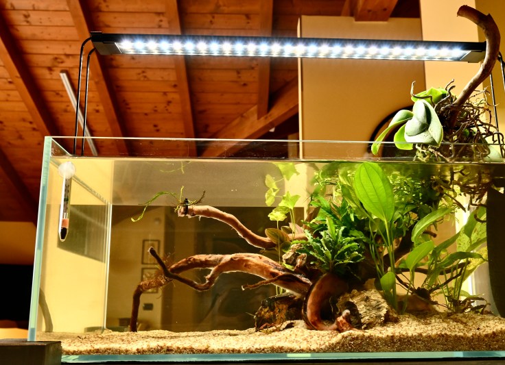 Anche se per il momento non è ancora popolato da pesci, è davvero emozionante poterlo osservare da più angolazioni, scoprire ogni giorno la crescita delle piante e prendendosene cura settimanalmente come una creatura da allevare .