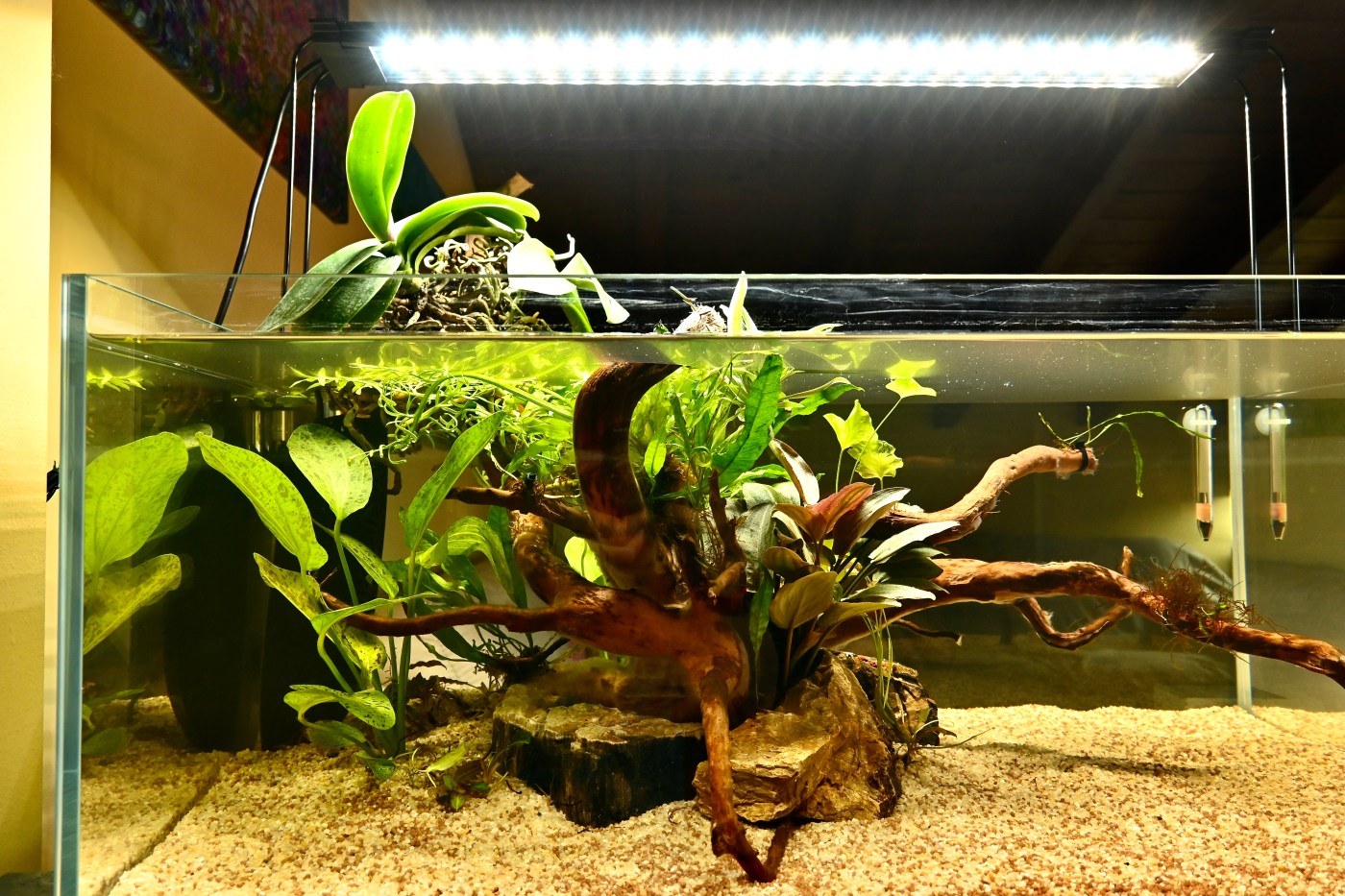 Anche se per il momento non è ancora popolato da pesci, è davvero emozionante poterlo osservare da più angolazioni, scoprire ogni giorno la crescita delle piante e prendendosene cura settimanalmente come una creatura da allevare .
