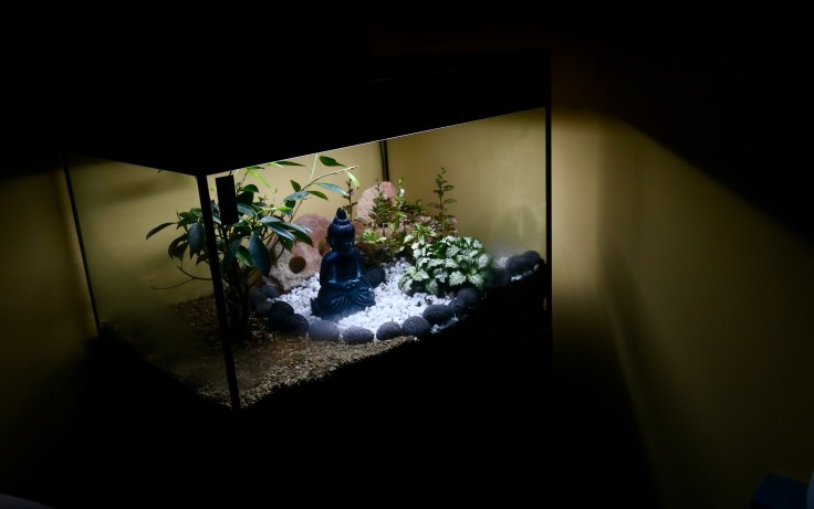 “Cosa ne facciamo del vecchio acquario?” era scontato che ci ponessimo questa domanda dopo aver regalato pesciolini, piante acquatiche e svuotato la vasca. Non mi piaceva l’idea di mettere un annuncio su qualche sito di compravendita dell’usato, quindi ho pensato di sfruttarlo come teca per un terrarium, creando da sola un microambiente autosufficiente, manco a dirlo, in stile Zen.