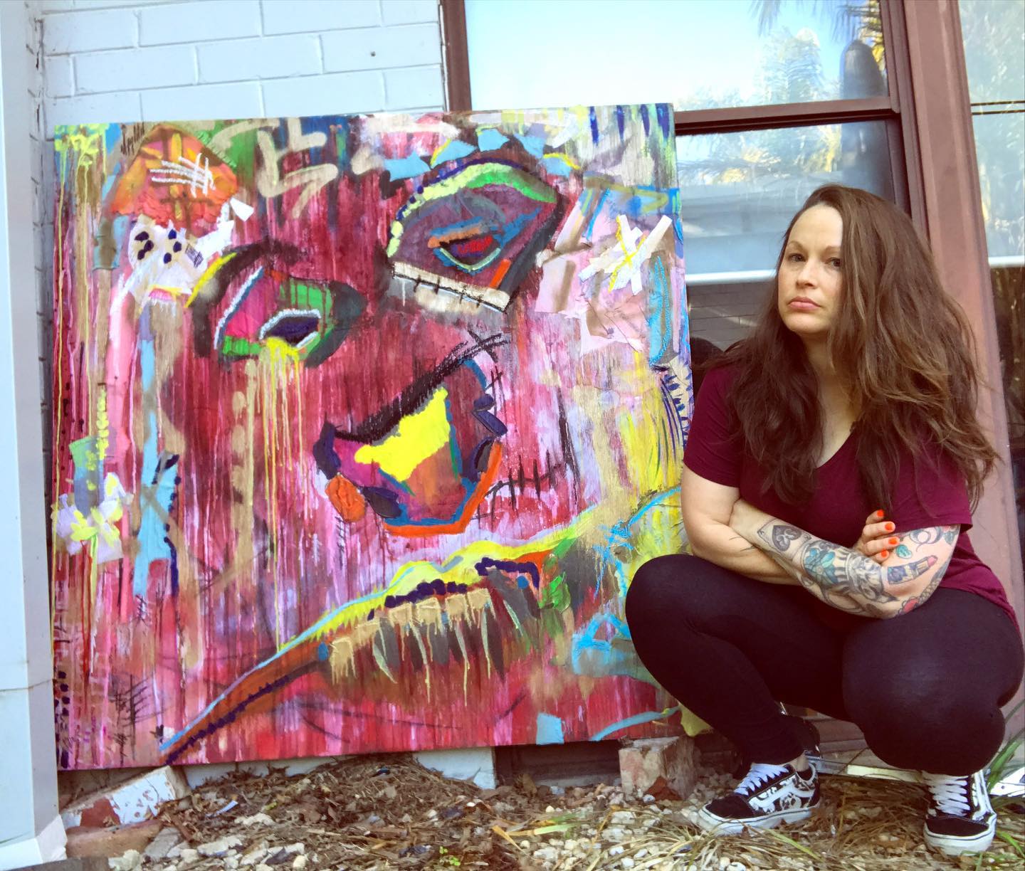C’è un senso libertà nei suoi lavori come lei stessa afferma: Se la vernice gocciola lì, così sia. Non controllo tutto in modo eccessivo. Realizzo spesso arte femminista che critica le visioni sociali della donna come oggetto. Quando disegno e dipingo uomini, li sessualizzo invertendo l’oggettivazione storica delle donne. Le mie influenze artistiche includono Lee Krasner, Aida Tomescu, Joan Mitchell, Marina Abramovic, Jean-Michel Basquiat, Cindy Sherman, Judy Chicago e Stan Brakhage oltre ai filosofi Simone de Beauvoir con “Il secondo sesso” e Fredrich Nietzsche con “Eterno ritorno” e “Volontà di potenza”. Mentre continuo a fare arte sfiderò i mezzi tradizionali, continuando a mescolare i materiali in modi non convenzionali. Utilizzerò diverse superfici, producendo opere d’arte uniche. Mi immergerò più a fondo nell’astrazione e nel tessuto della realtà e in cosa ciò significhi per la produzione di arte. Continuerò i miei studi e quando il mondo tornerà a una parvenza o normalità, ho intenzione di esporre regolarmente.