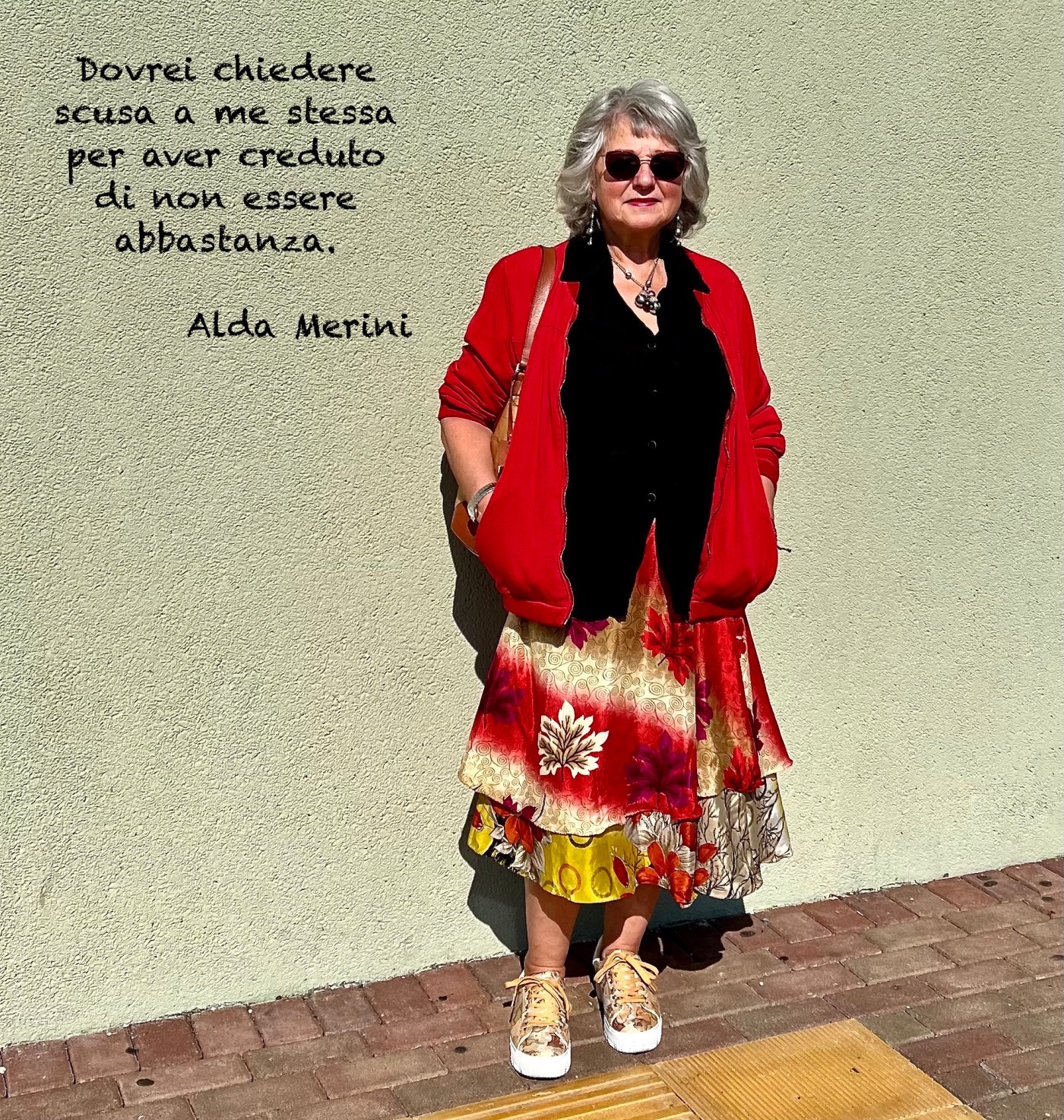 In fondo, come ho metaforicamente scritto sul muro alle mie spalle nella foto, “Dovrei chiedere scusa a me stessa per aver creduto di non essere abbastanza”, rubando e facendo mia questa citazione alla grande poetessa dei Navigli.