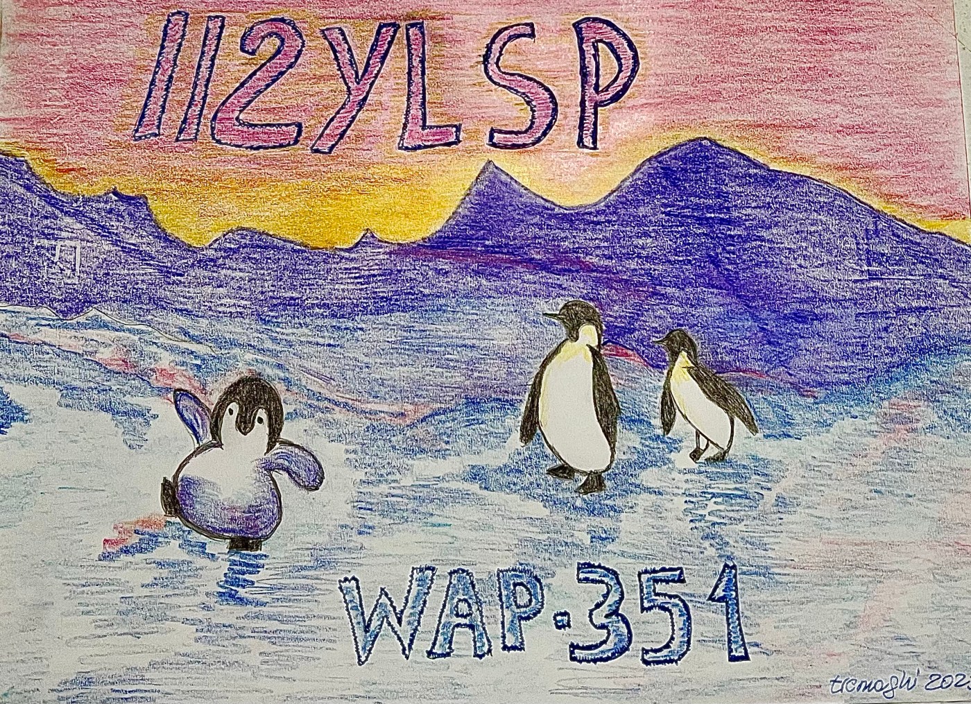 La mia preparazione a questo evento non finisce qui. Il mio shack non è fisso, così come il dipolo, quindi la mia postazione è vagante, cambia ogni volta che uso la radio. Per abbellire e personalizzare il mio prossimo shack dell’Antarctic Activity Week, ho preparato un disegno da appendere (invecchiando si torna bambini, hi!), che mi suggerirà la referenza WAP ma soprattutto che non dovrò uscire con il mio call personale…l’abitudine e gli anni a volte giocano brutti scherzi!
