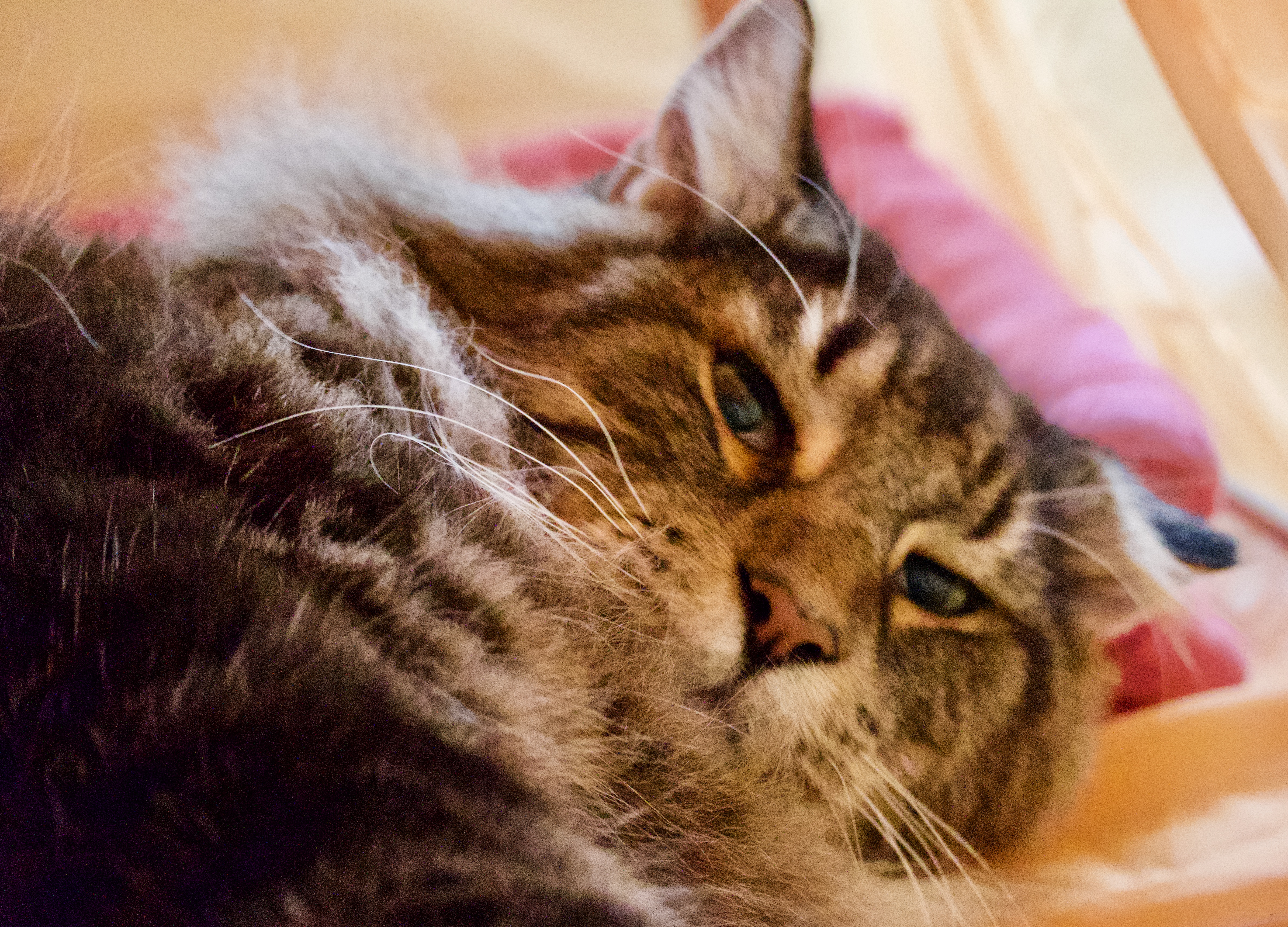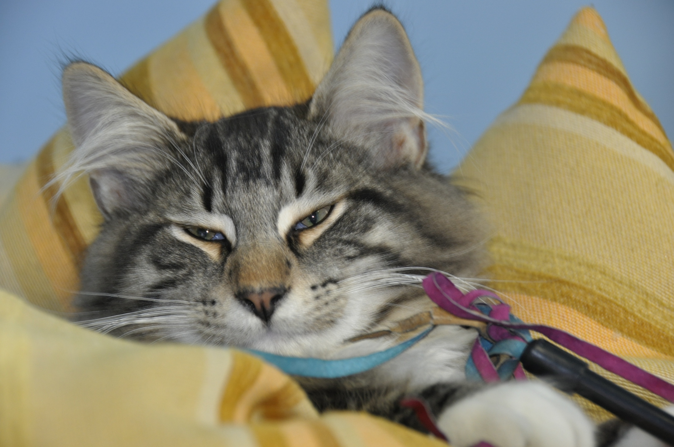 Avevo un pò il magone… ti stavamo separando da mamma Blacky, papà Thor e i tuoi due fratellini Ballou e Beowulf, da nonna Kumi e nonno Lord e da tutta la banda di mici dell’allevamento Sevenfjord e soprattutto da Amanda e Davide che ti avevano allevato con tanto amore per tre mesi e mezzo, che si congedarono regalandoti quella copertina sulla quale dormi ancora di tanto in tanto quando sali sul lettone.