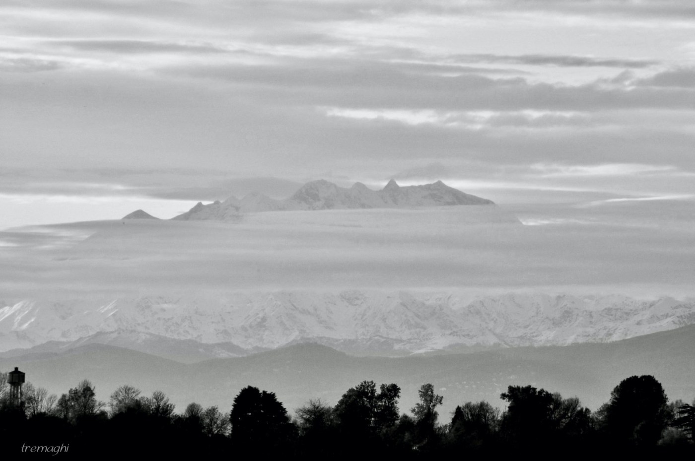 Ecco il massiccio del Monte Rosa, che svetta da una coltre di nubi che mutano in continuazione mosse da un leggero vento. Velocemente controllo i settaggi della mia Nikon; la sensibilità della pellicola e l’apertura del diaframma, inquadro, metto a fuoco e scatto, un’azione veloce prima che le nuvole modificano il mio quadro astratto, quell’isola montuosa che emerge dal mare con le onde che stanno per infrangersi sulla battigia nel grigiore di una giornata di dicembre. Il juke box della mia anima fa partire la canzone, è quella meravigliosa poesia scritta e cantata da Enrico Ruggeri, Il mare d’inverno. É la versione che preferisco rispetto a quella cantata dalla Berté. Penso che un cantautore trasmetta sentimenti più profondi quando canta una sua canzone. Guardo a lungo il mio scatto sul display della Nikon, ascolto il mio respiro e non riesco a togliere gli occhi dall’anteprima della mia foto che mi riporta magicamente al mare d’inverno che amo e mi ritrovo sola su una spiaggia vuota. Sento il rumore delle onde, il profumo salmastro, il vento accarezzarmi volto e scompigliarmi i capelli. Rimango molto tempo in questo stato trascendentale, assaporando tutte quelle magnifiche sensazioni finché finisce la canzone.