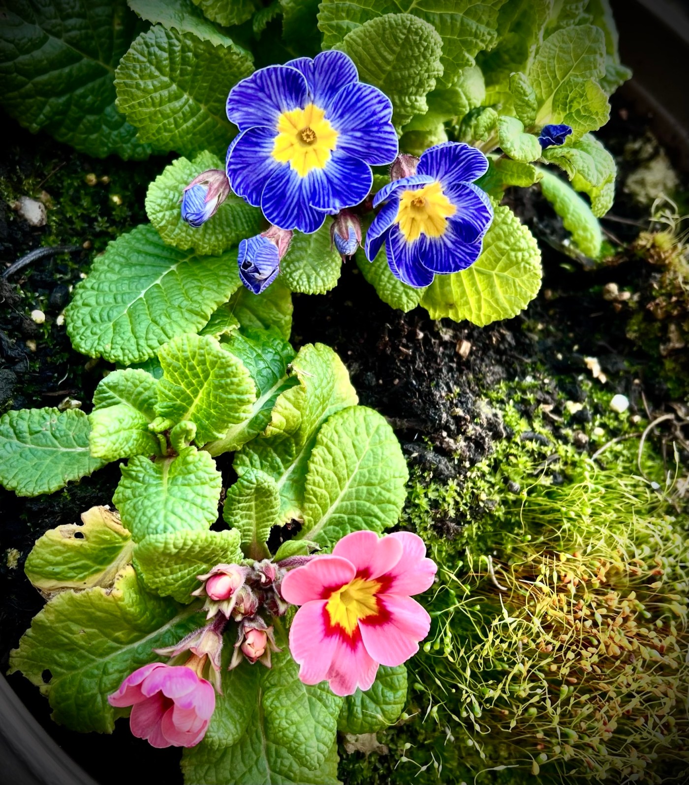 Amo lasciare libera la natura di fare ciò che vuole. Nella ciotole delle primule la scorsa estate era morta una piantina e aspettavo la primavera per sostituirla. Durante l’autunno in quello spazio ormai libero è cresciuto del muschio, che donava una gradevole macchia di colore grazie alle copiose piogge e ho deciso di lasciarlo dimorare in quel vaso in cui aveva deciso di crescere.