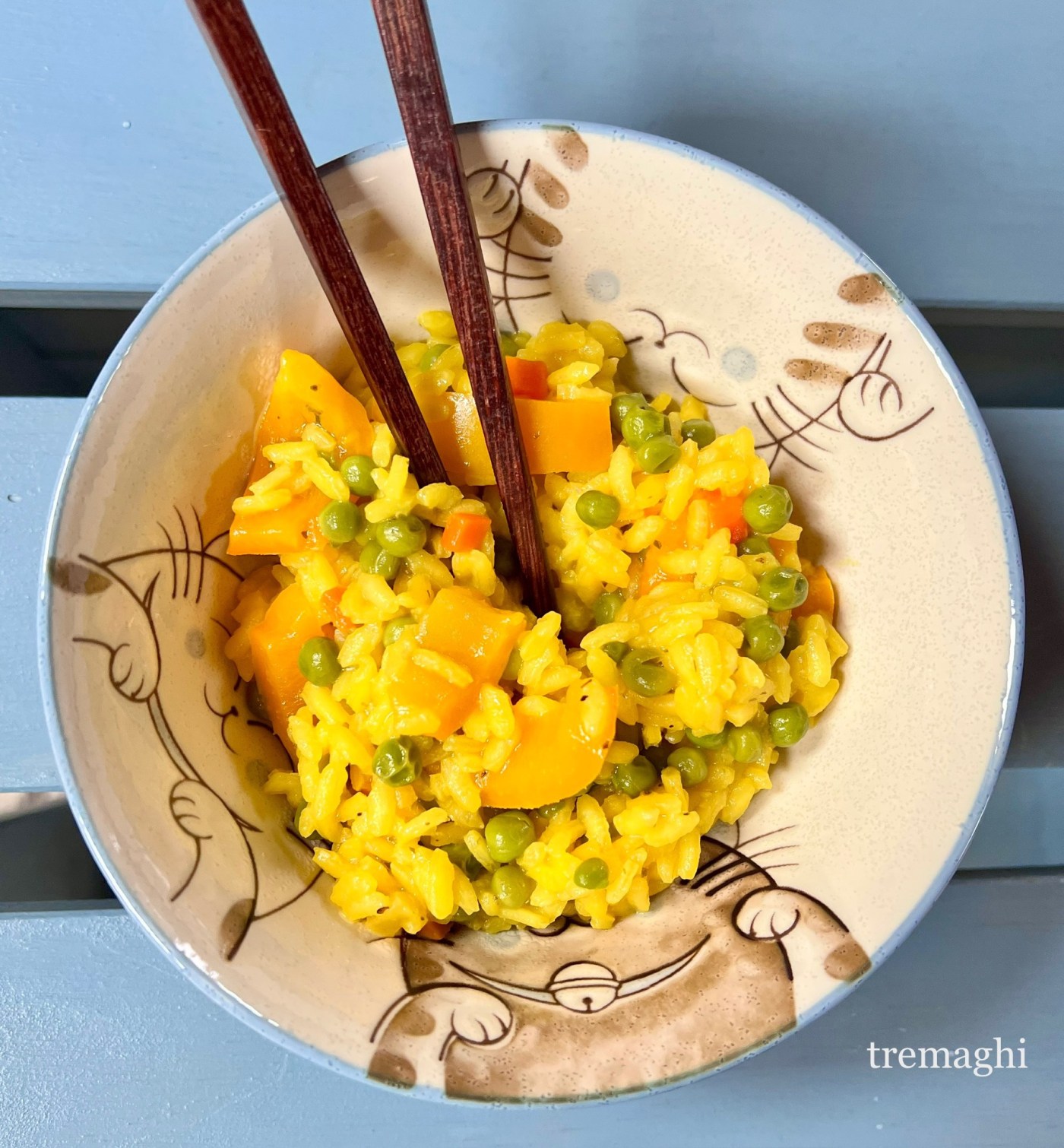 Una volta impiantato, ho assaporato questo delizioso e semplice risotto, profumato, colorato e dagli ingredienti che ben si sposano tra di loro, un tributo alle nostre due magnifiche isole, la Sardegna e la Sicilia, nonché il Delta del Po, quella meravigliosa area naturalistica tra le più importanti d’Europa. Infinitamente grata a queste Terre per i suoi doni!