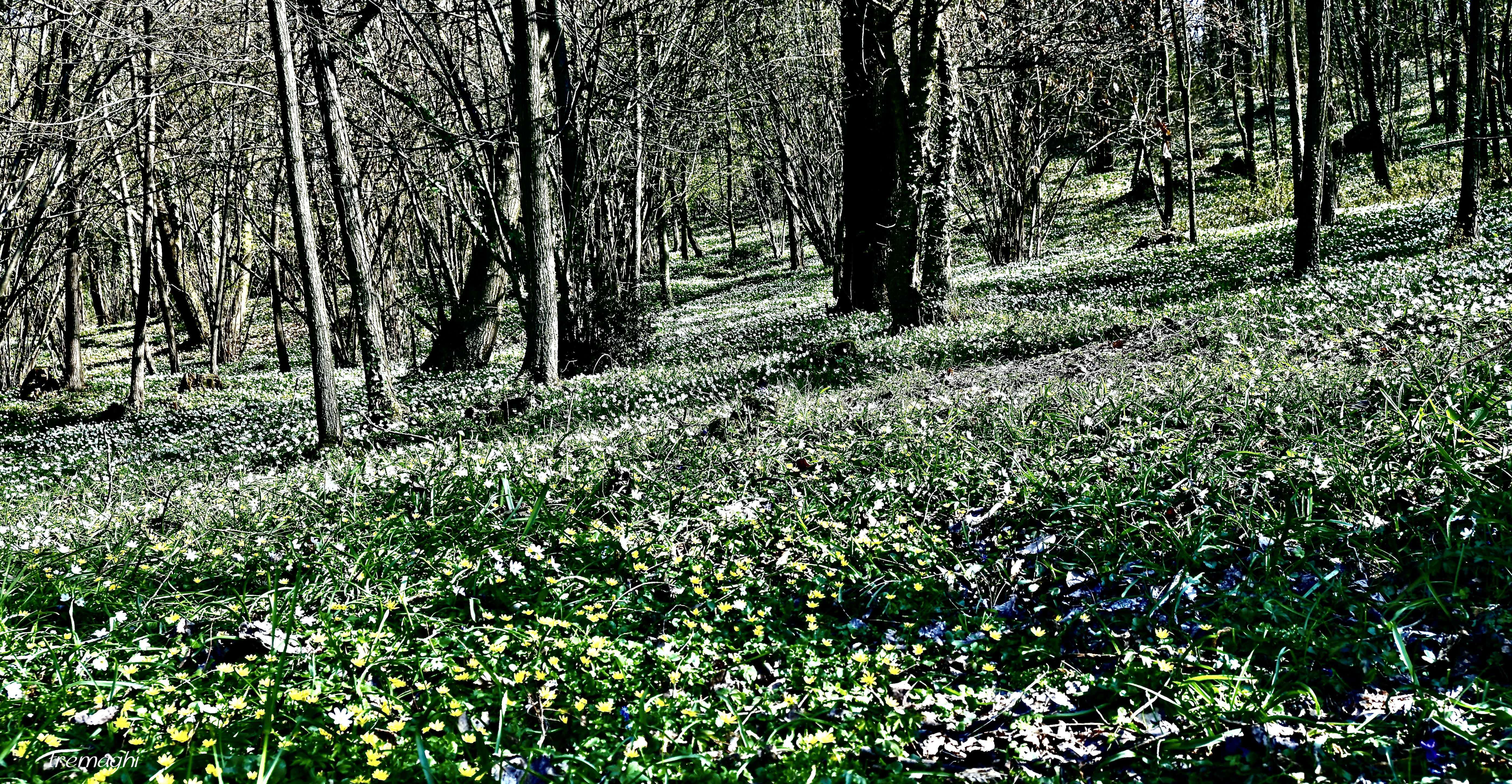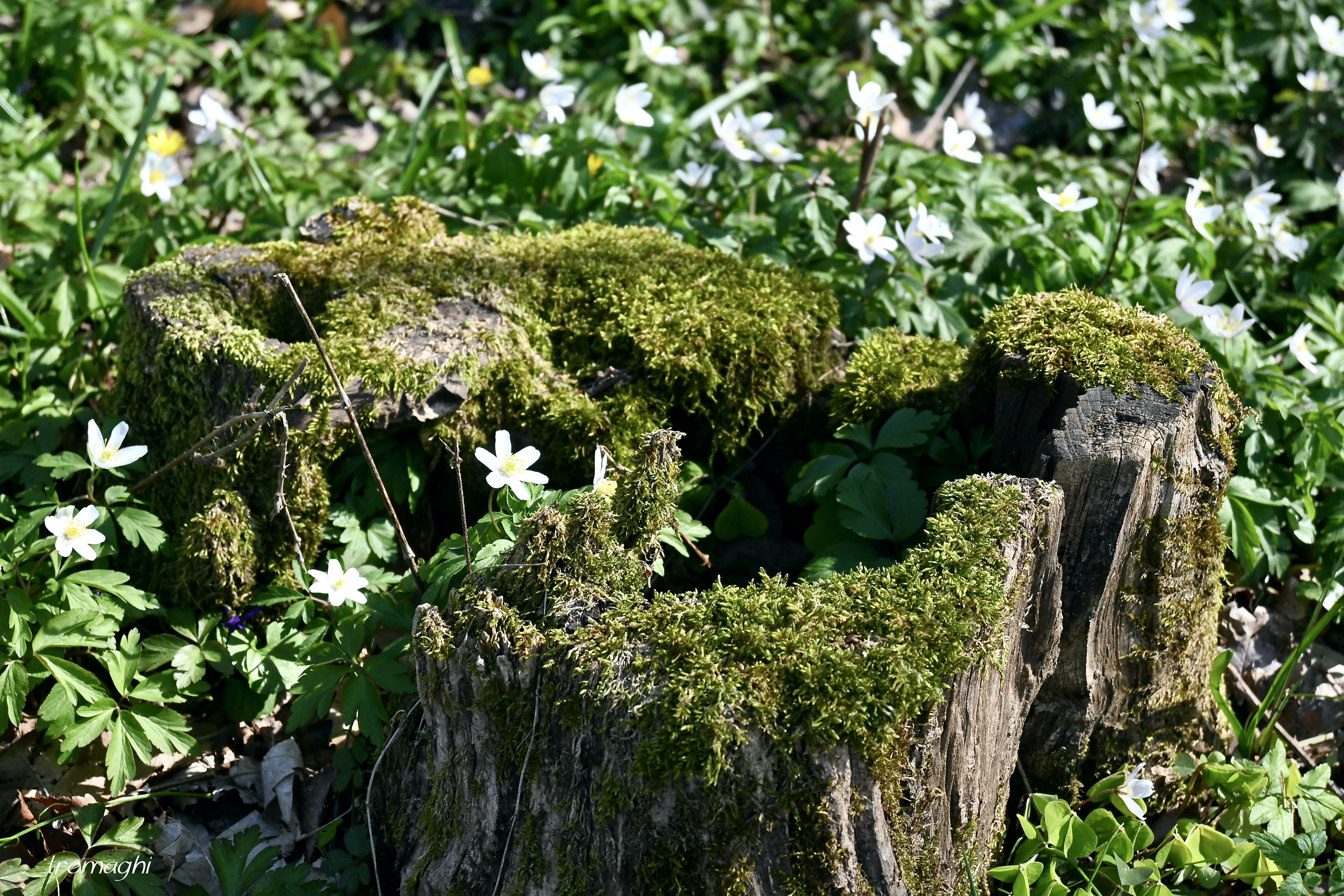Oggi abbiamo fatto rilassante passeggiata in mezzo ai boschi, noi due soli in mezzo alla meravigliosa natura primaverile. Le prime foglioline verdi che fanno capolino sui rami degli arbusti, primule gialle che adornano le dolci rive dei sentieri, una miriade di fiori di Anemone nemorosa adornano il sottobosco facendolo sembrare un candido e soffice tappeto.