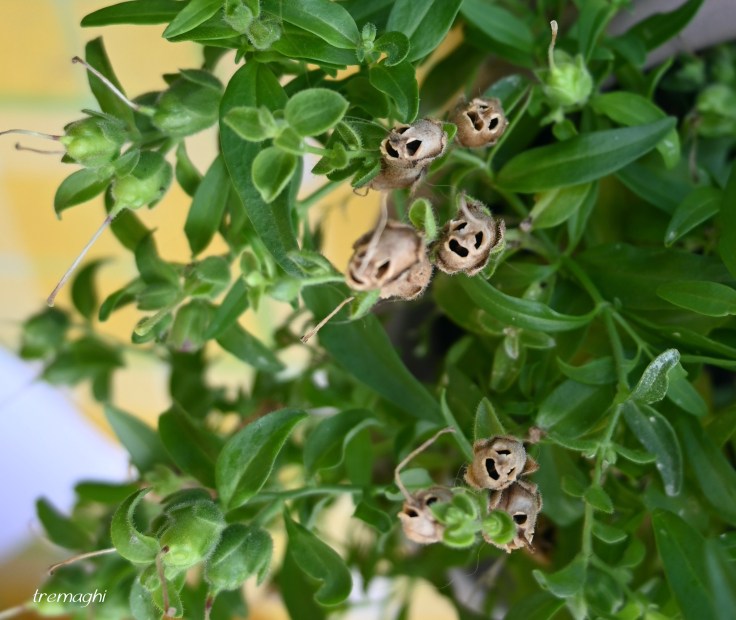 Di questa metamorfosi dal sapore macabro mi sono accorta solo oggi, quando per la prima volta ho staccato delicatamente tutti i piccoli teschi dalla mia pianta custodendoli in una busta di carta fino a febbraio, quando pianterò in un vaso i semi che contengono e che terrò in casa finché germoglieranno le nuove piantine. A primavera inoltrata le trapianterò e sistemerò i vasi all’esterno, aspettando che mi regalino meravigliose fioriture.