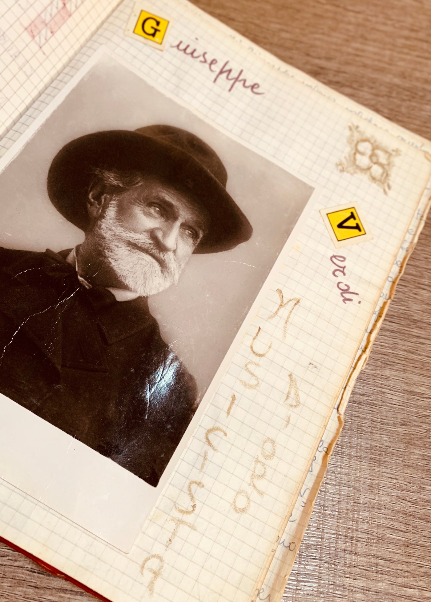 L’ho canticchiata in falsetto, arie che avevo imparato da bambina, quella la musica verdiana è stata prima la mia ninna nanna poi una presenza quotidiana nella mia infanzia, facendomi crescere sempre più l’amore per il compositore di Busseto. La passione per la musica classica e operistica me l’aveva trasmessa zio Alfredo con il quale ho condiviso i primi otto anni della mia vita. Sin da bambina mi aveva insegnato i cori verdiani, del Nabucco (Và pensiero), de I lombardi alla Prima Crociata (O Signore, dal tetto natio), de La Traviata (Noi siamo zingarelle) e il coro di zingari de Il Trovatore, poesie in meravigliosa musica. Ma non mi ero limitata ad ascoltare le opere di Giuseppe Verdi, bensì avevo letto più volte il libro sulla sua vita a firma di Luigi Orsini che faceva bella mostra nella ricca biblioteca di mio zio. Alla fine avevo imparato quasi a memoria la storia del compositore, al punto che in seconda media, nel 1972, avevo scritto a braccio un compito in classe a tema libero, dedicandolo alla vita del musicista parmense e che ho scovato tempo fa in un cassetto e che voglio ricordare trascrivendolo fedelmente: