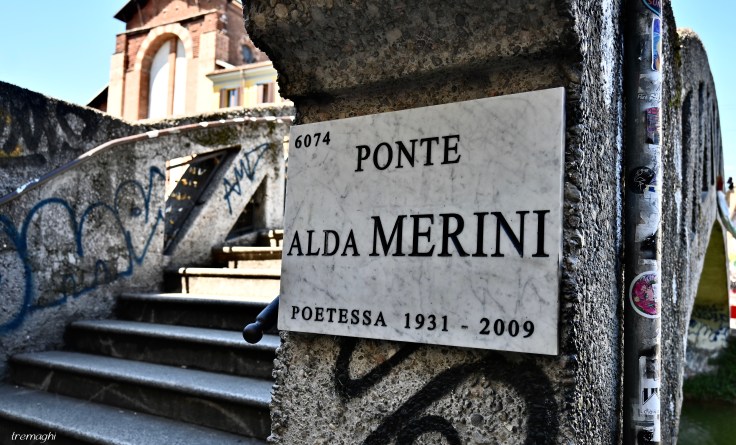 E non poteva mancare Lei, Alda Merini che ha vissuto gli ultimi anni della sua vita in Ripa di Porta Ticinese 47 a pochi passi dal Vicolo dei Lavandai. La sua casa di sempre dove sono nate le sue figlie e dopo tanti andirivieni fatti di parantesi dolorose, era tornata nel 1986 dopo aver lasciato Taranto, dove si era sposata in seconde nozze con Michele Pierri. In occasione del 10° anniversario della sua morte, il ponte in cemento di fronte alla sua casa è stato intitolato alla Poetessa dei Navigli, che ha dedicato una sua poesia anche alle donne inginocchiate sui brellin: