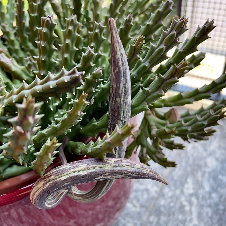 Chi l’avrebbe mai detto che quell’insignificante piccolo fusto succulento che qualche anno fa mi ha portato Nora avvolto in un pezzo di carta sarebbe diventata una bellissima pianta rigogliosa. Non a tutti piace l’Orbea variegata, conosciuta anche con altri buffi nomi, quali pianta stella marina, cactus stella marina, cactus carogne, fiore di carogne, cactus rospo, pianta di rospo. Come consuetudine per me è Nora, il nome di chi me l’ha regalata e di questa pianta apprezzo tutto, perché se Madre Natura l’ha voluta così, avrà avuto i suoi buoni motivi.