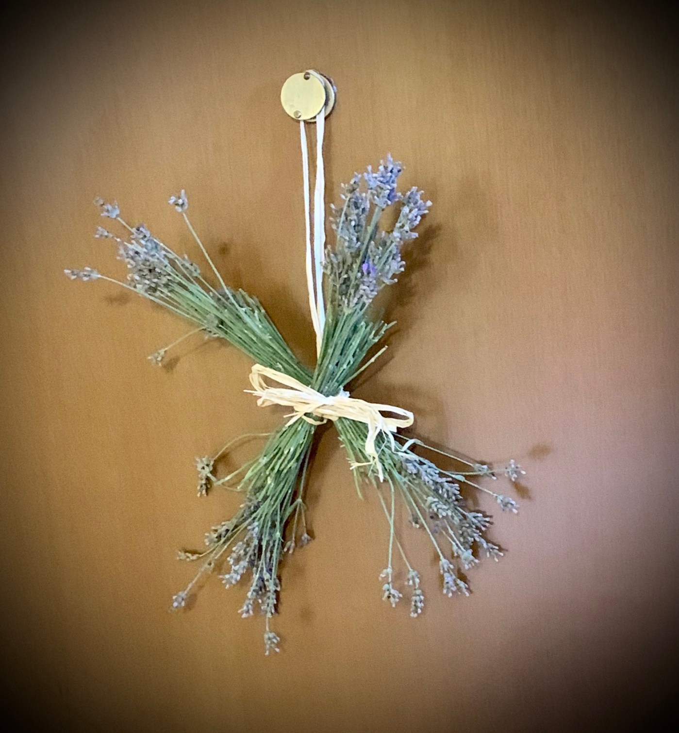 Ogni anno in questi giorni taglio gli steli della mia pianta con molta delicatezza per disporli a forma di croce solare, l’appendo allo spioncino della porta d’ingresso come portafortuna naturale per proteggere la nostra casa e dare una sorta di benvenuto con la sua leggera fragranza a chi varca la soglia, un modo per mantenere vive quelle tradizioni popolari di una volta, anche se erano intesi come rituali magici. L’ho raccolta ieri mattina all’alba, bagnata dalla copiosa pioggia notturna ho dovuto aspettare fino ad oggi finché si asciugasse bene e creare il mio amuleto di spighe in una sorta di piacevole rituale avvolta dall’adorabile profumo della lavanda, un ricostituente naturale per lo spirito.